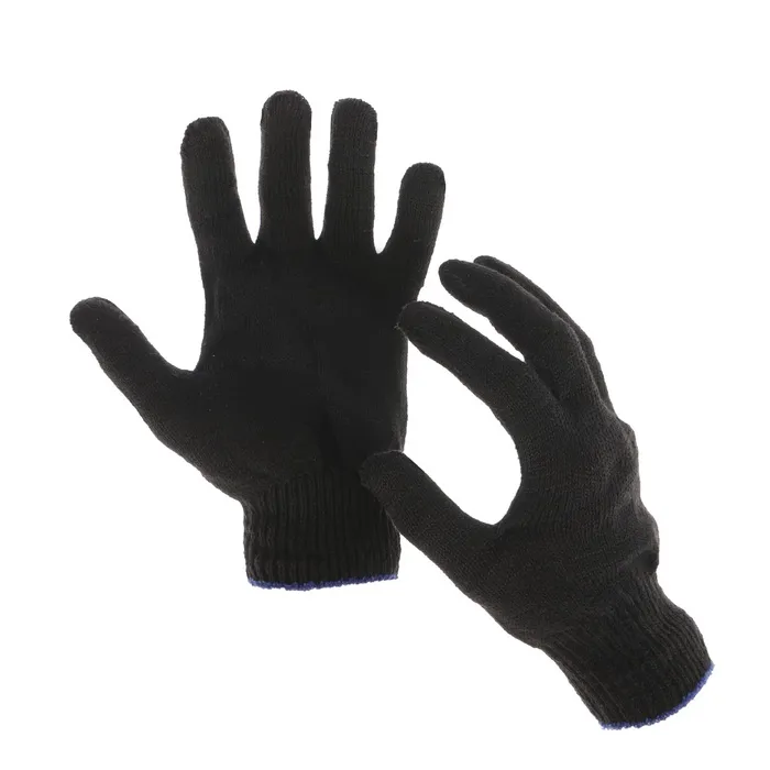 Перчатки садовые, хб, вязка 10 класс, 4 нити, размер 9, без покрытия, чёрные — Характеристики
