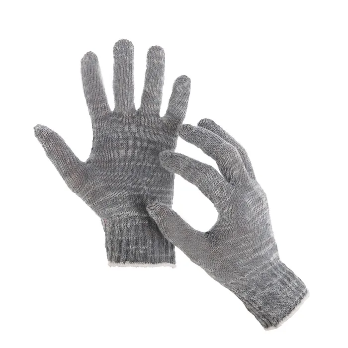 Перчатки садовые, хб, вязка 7 класс, 3 нити, размер 9, без покрытия, серые — Характеристики