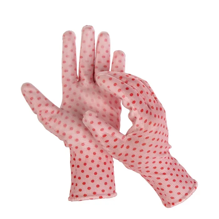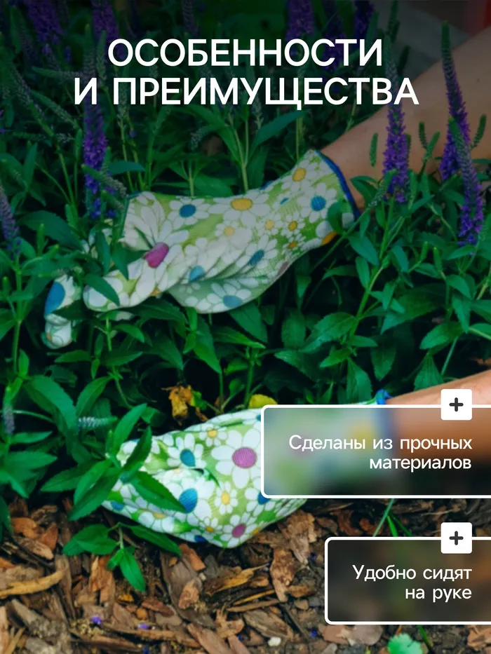 Изделия имеют тканевую основу и специальную PVC-пропитку: такое сочетание материалов делает их одновременно комфортными и износоустойчивыми. Яркая расцветка поможет легко и быстро найти пропажу среди грядок.