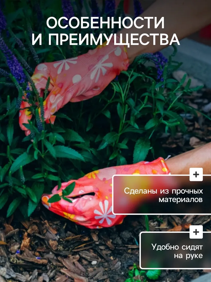 Изделия имеют тканевую основу и специальную PVC-пропитку: такое сочетание материалов делает их одновременно комфортными и износоустойчивыми. Яркая расцветка поможет легко и быстро найти пропажу среди грядок.