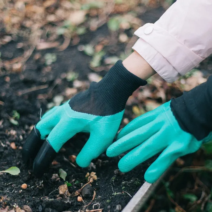 Изделия имеют тканевую основу и специальную PVC-пропитку: такое сочетание материалов делает их одновременно комфортными и износоустойчивыми. Яркая расцветка поможет легко и быстро найти пропажу среди грядок.
