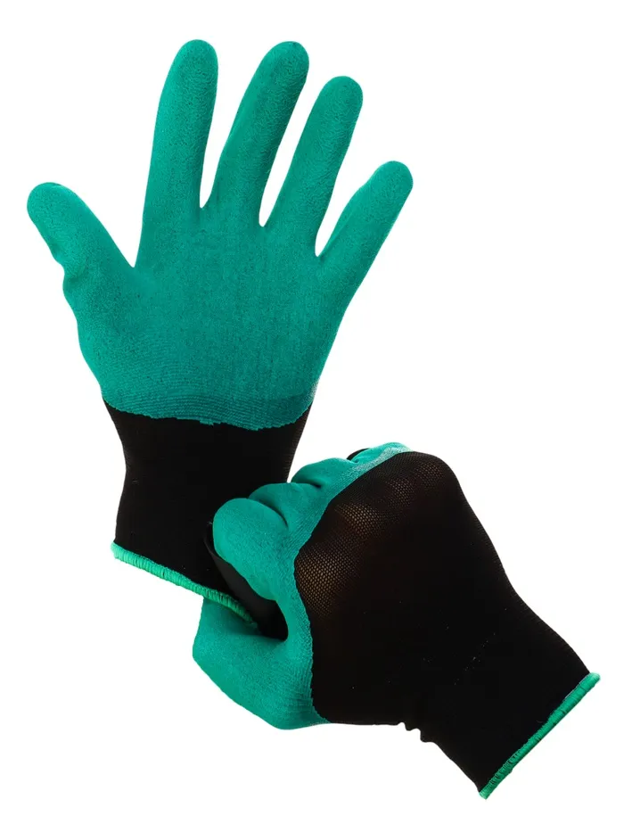 Перчатки садовые, нейлоновые «Землеройки», с латексной пропиткой, с когтями, размер 10, зелёные, Greengo — Характеристики
