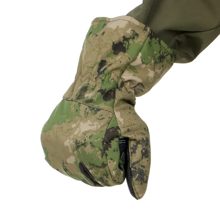 Верхний слой перчаток выполнен из материала софтшелл (Softshell), который широко используется в производстве функциональной одежды для туризма, спорта, охоты и рыбалки. Этот материал сочетает в себе прочность, эластичность, хорошо пропускает воздух и отводит влагу тела, а так же быстро сохнет. Перчатки также оснащены утеплителем из флиса, который сохраняет тепло рук при низких температурах.