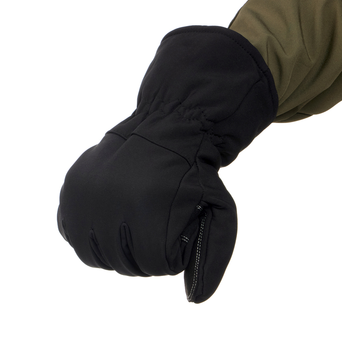 Верхний слой перчаток выполнен из материала софтшелл (Softshell), который широко используется в производстве функциональной одежды для туризма, спорта, охоты и рыбалки. Этот материал сочетает в себе прочность, эластичность, хорошо пропускает воздух и отводит влагу тела, а так же быстро сохнет. Перчатки также оснащены утеплителем из флиса, который сохраняет тепло рук при низких температурах.