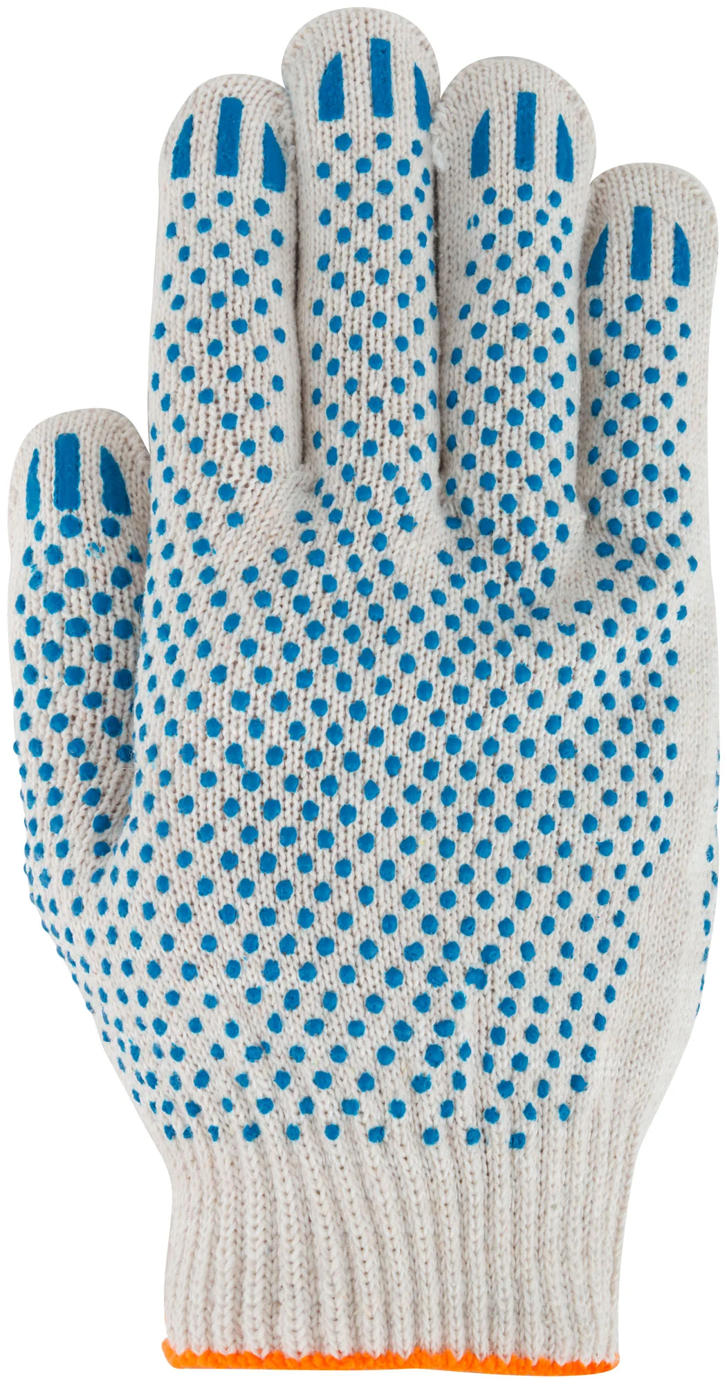 Перчатки изготовлены из хлопчатобумажной пряжи, что обеспечивает их долговечность и комфорт при ношении. 10 класс вязки гарантирует плотность и надежность, а дополнительные ПВХ точки повышают износостойкость и сцепление.