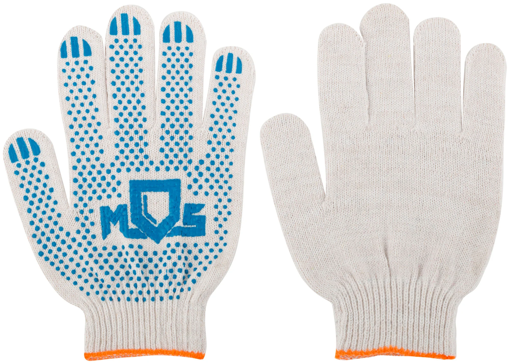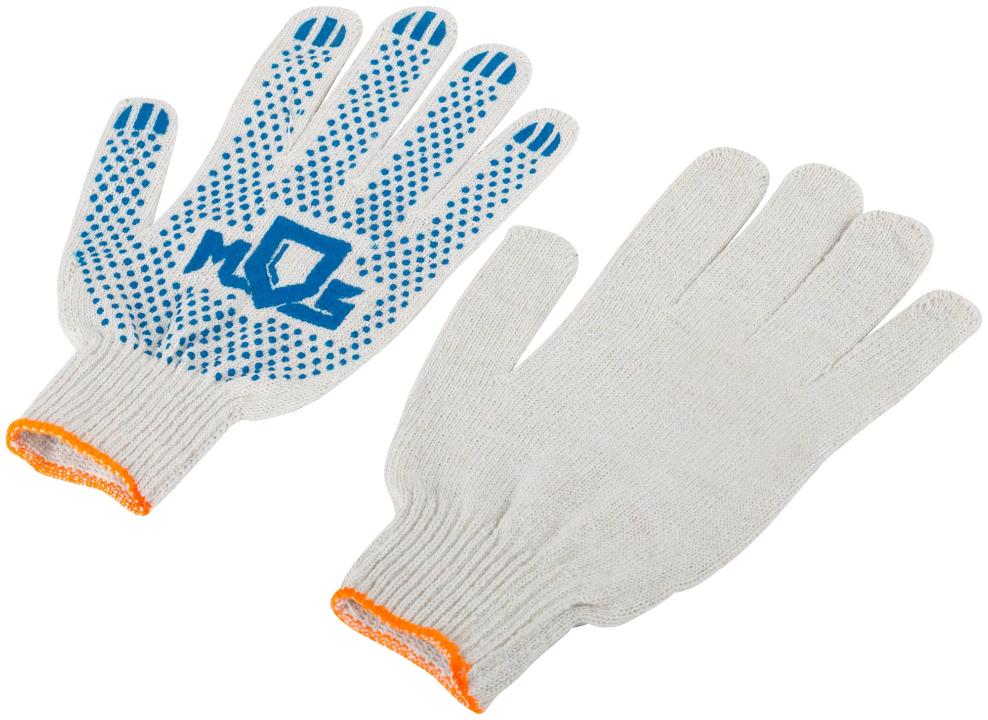 Перчатки выполнены из 100% хлопка и усилены ПВХ напылением, что обеспечивает дополнительное сцепление и долговечность. Класс вязки 10 и использование 4 нитей гарантируют надежность и износостойкость.