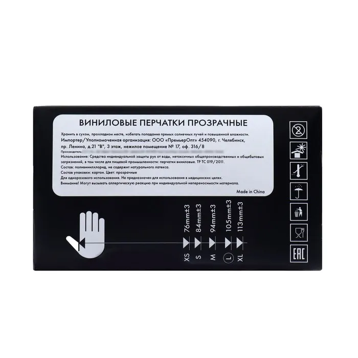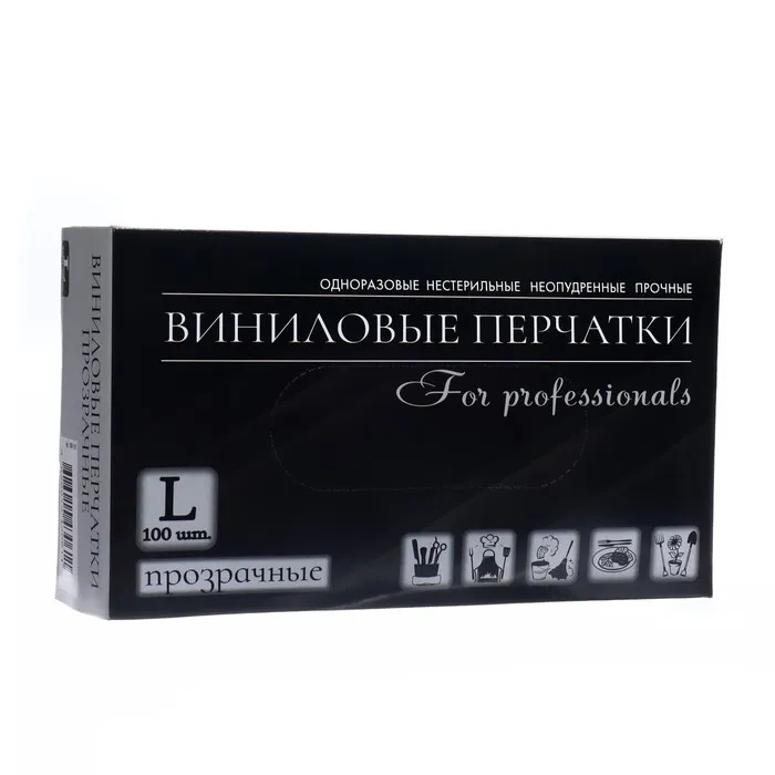 Перчатки виниловые, неопудренные, нестерильные, размер L, 50 пар, прозрачные — Характеристики