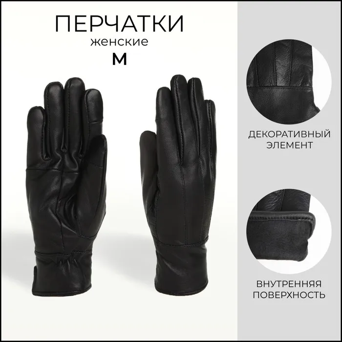 Перчатки женские из натуральной кожи, размер M, с утеплителем, чёрные — Характеристики