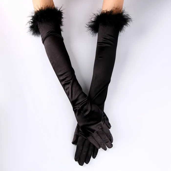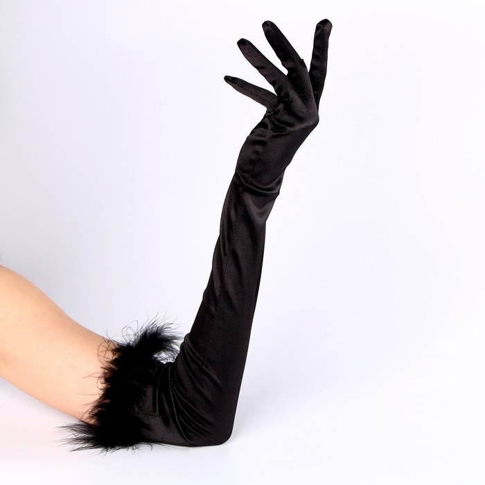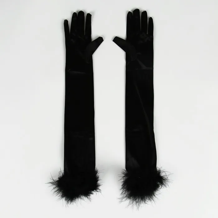 Перчатки женские с перьями, цвет чёрный, длинные — Характеристики