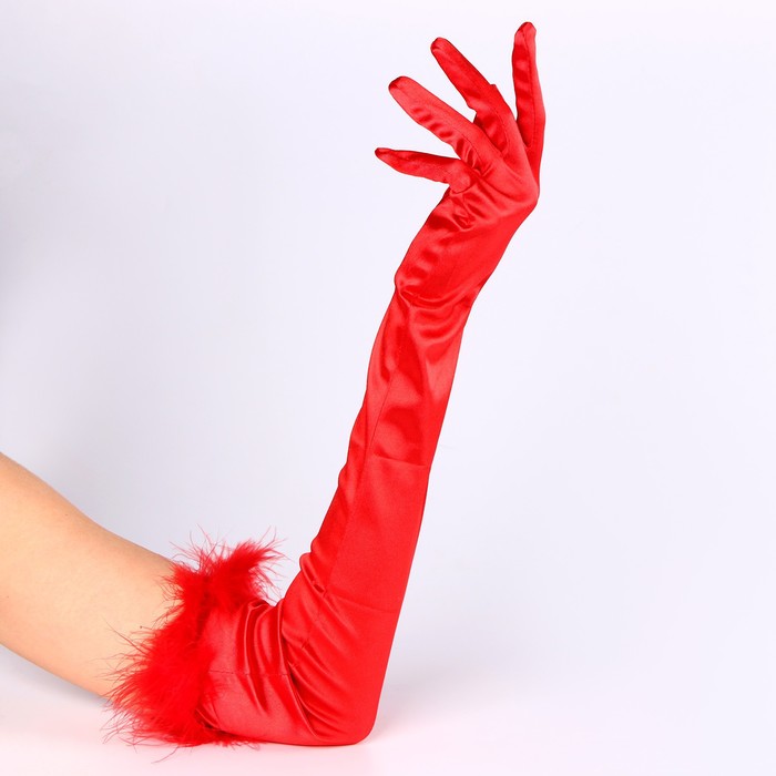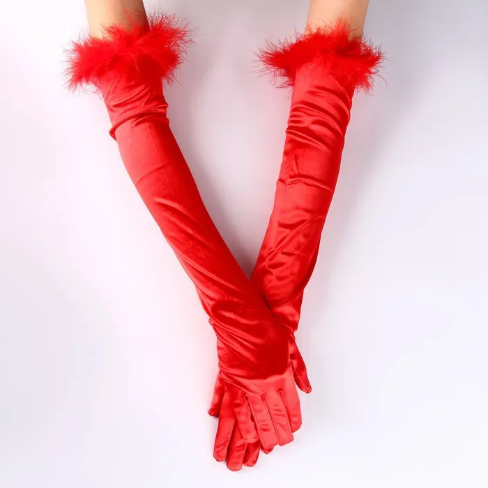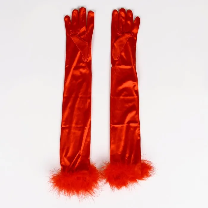Перчатки женские с перьями, цвет красный, длинные — Характеристики