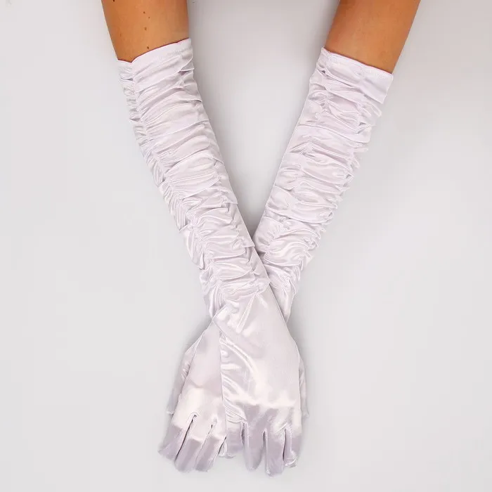 Перчатки женские со сборкой, цвет белый, длинные — Характеристики