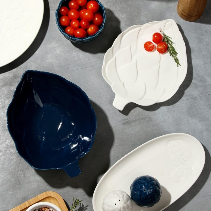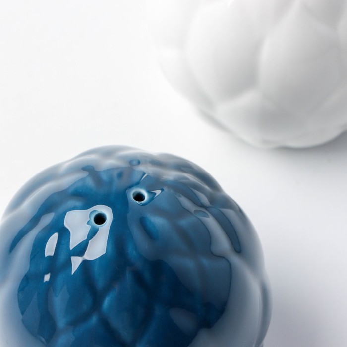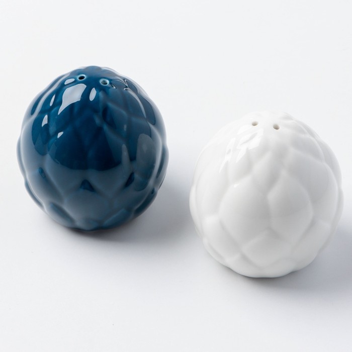 Перечница и солонка из керамики «Артишок», белая и синяя, 6 х 6.5 см