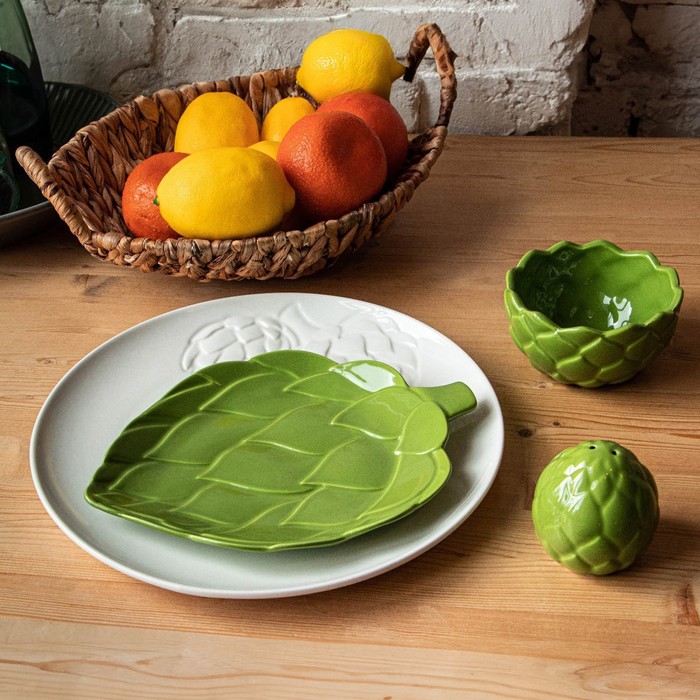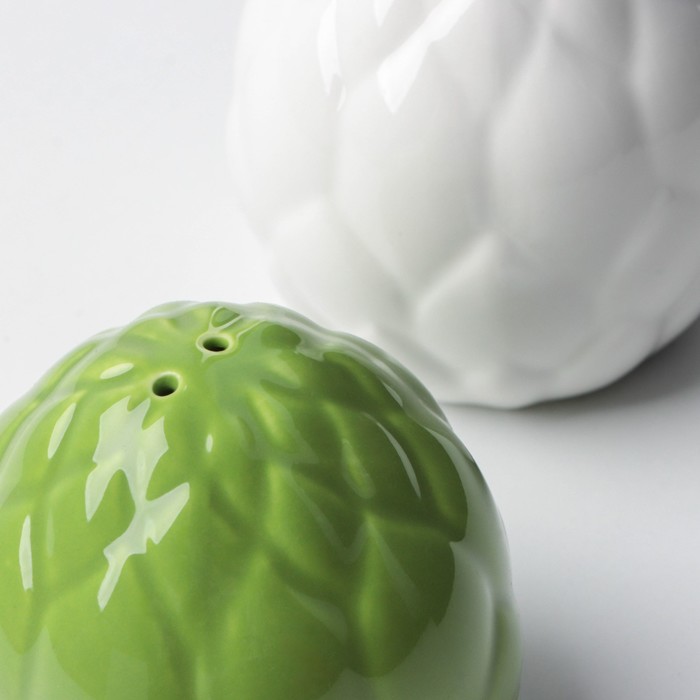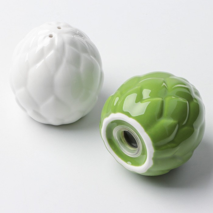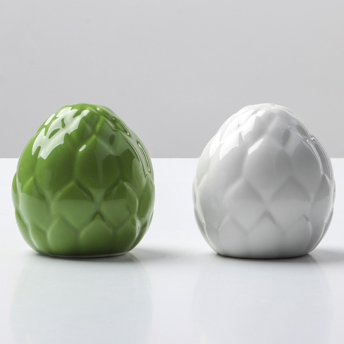 Перечница и солонка из керамики «Артишок», белая и зеленая 6 х 6.5 см, цвет белый-зелёный — Характеристики