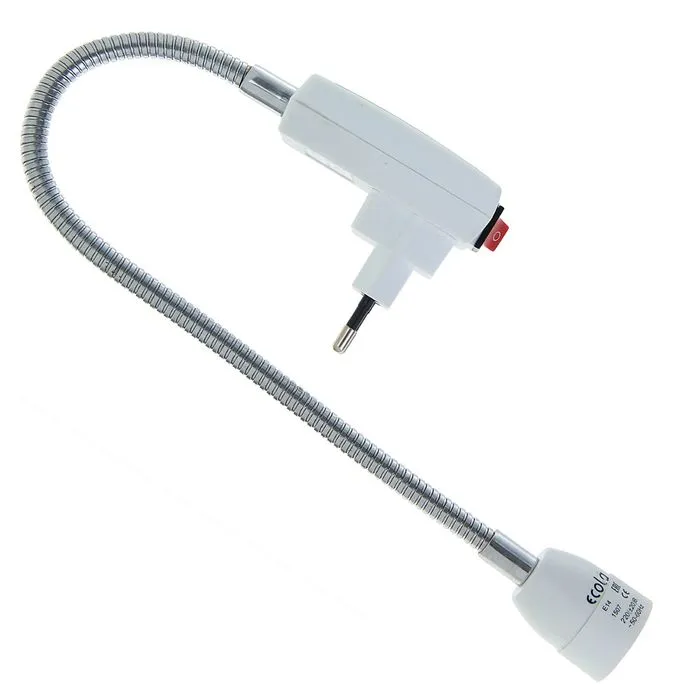 Переходник Ecola, вилка/патрон Е14, 395 × 45 мм, с выключателем, белый
