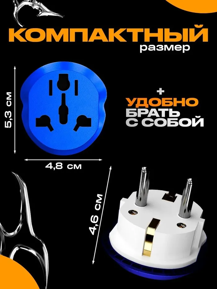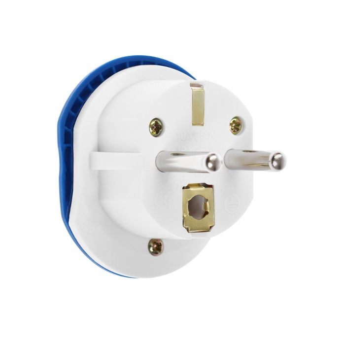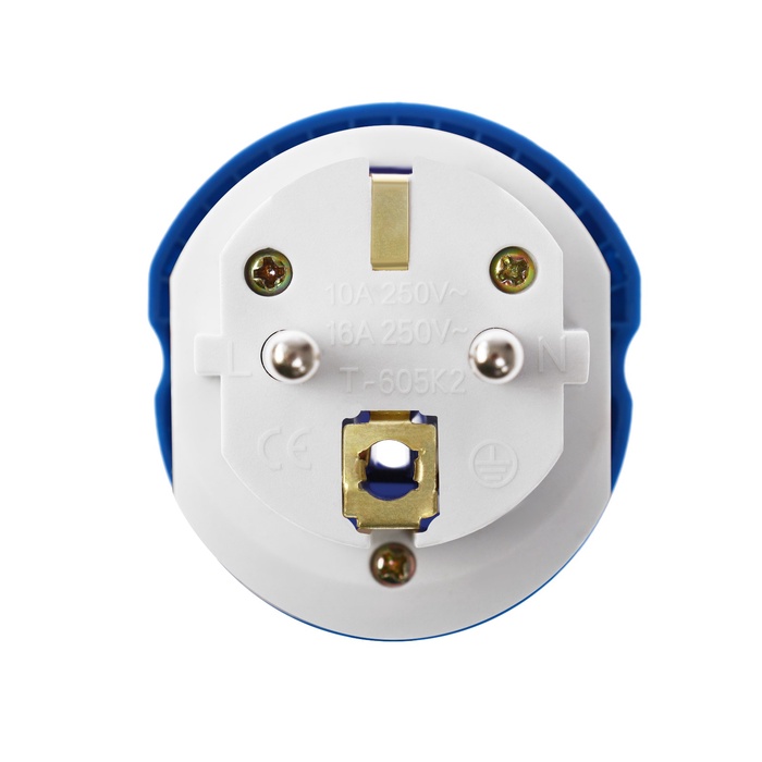 Переходник универсальный 16 А, с заземлением, 220 В, заподлицо в розетку, синий — Характеристики