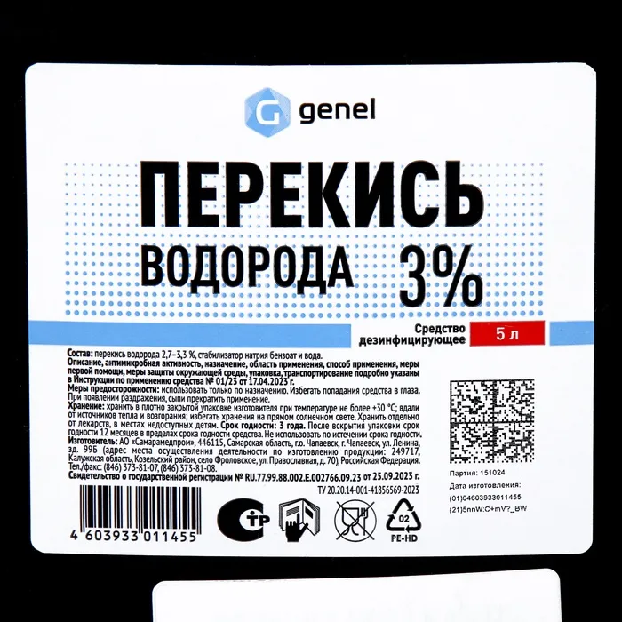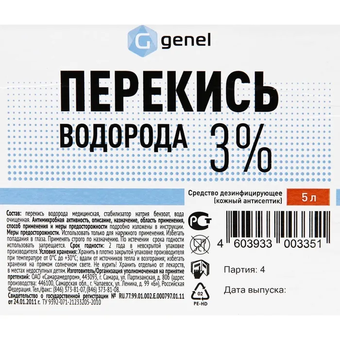 Перекись водорода LekSa, 3 %, 5 л — Характеристики