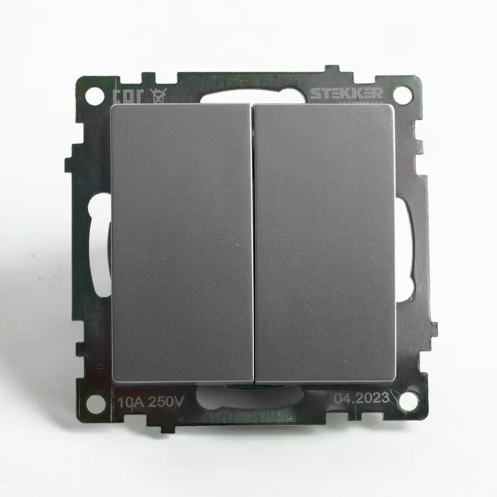Переключатель 2-клавишный (механизм), 250В, 10А, STEKKER серия Катрин, серебро,GLS10-7107-03 1022443 — Характеристики
