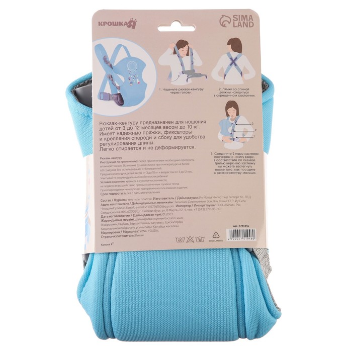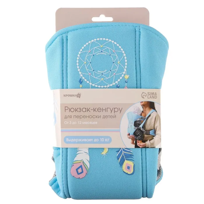 Переноска для малыша «Перья», эргорюкзак, слинг, от 3 до 10 кг, голубой — Характеристики