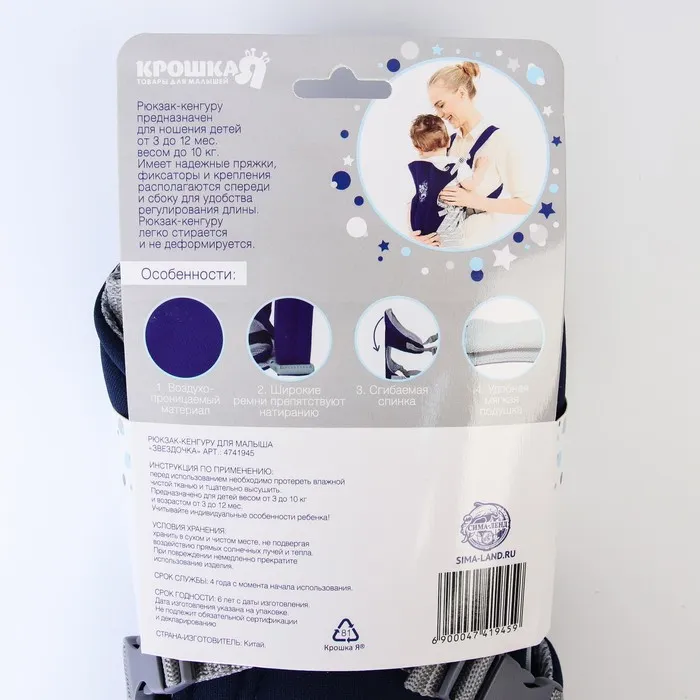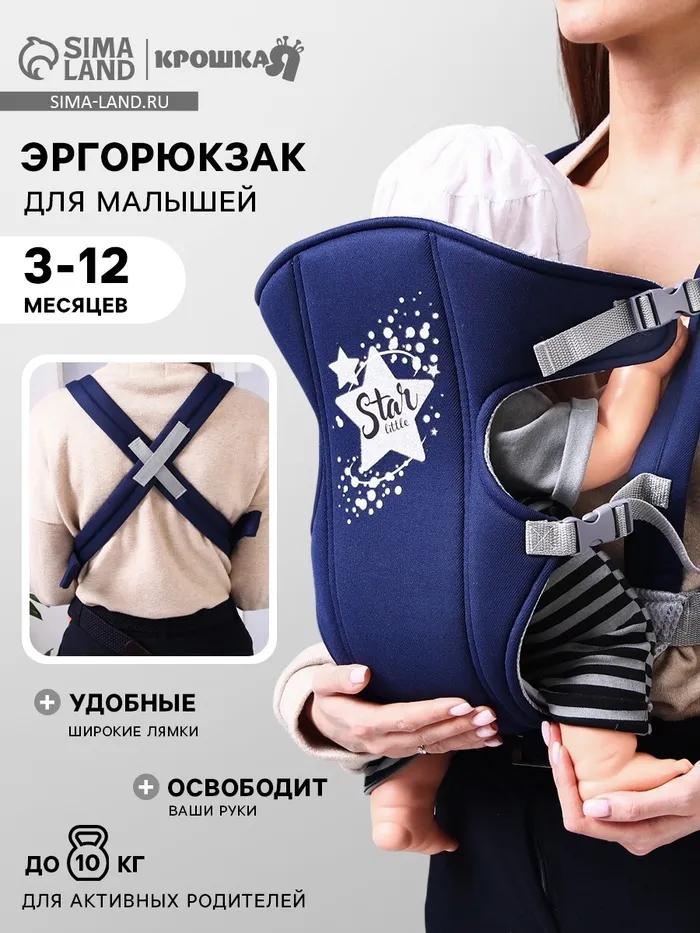 Переноска для малыша «Звёздочка», эргорюкзак, слинг, от 3 до 10 кг, синий — Характеристики