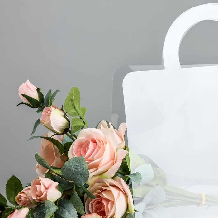 Изготовленная из высококачественного прозрачного пластика, эта сумка подчёркивает красоту растений, создавая прозрачную витрину для их изысканных форм и цветов.