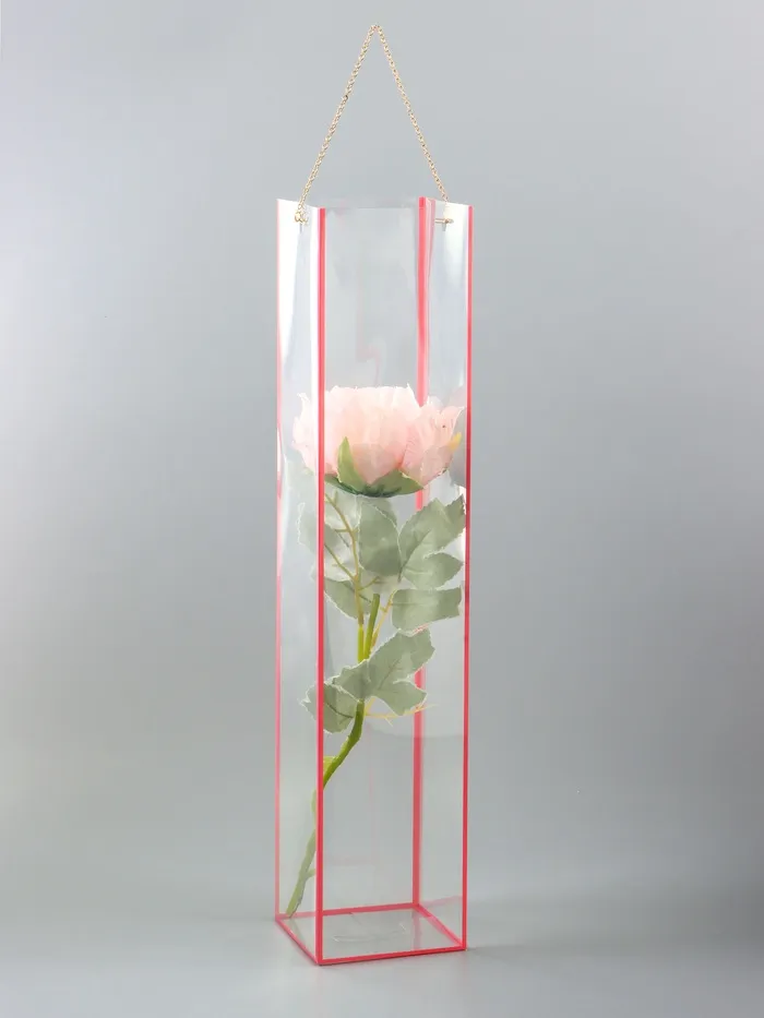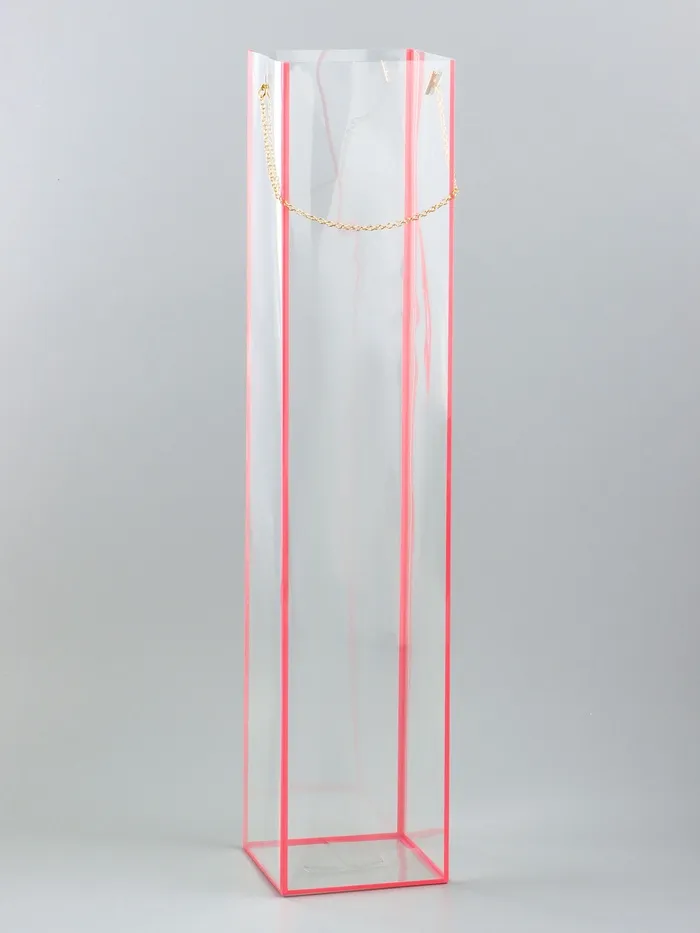 Стильная защита для нежных букетов! Розовая переноска для цветов сочетает практичность и эстетику. Влагостойкий PVC-чехол с металлической ручкой надежно защищает композицию при транспортировке, сохраняя ее безупречный вид.