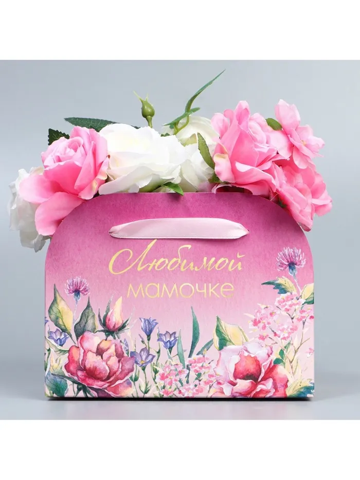 Переноска для цветов складная «Любимой мамочке», 17 × 13 × 7 см — Характеристики