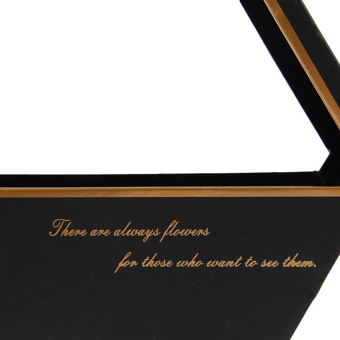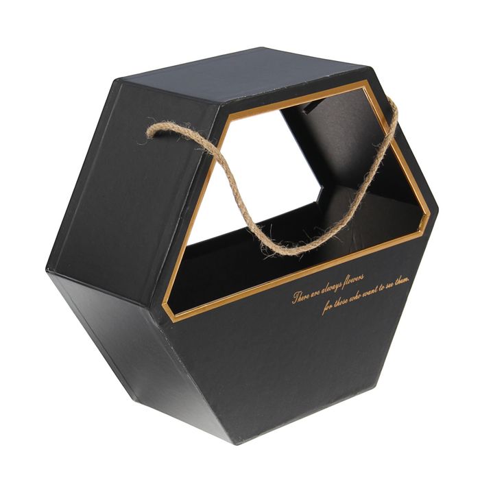 Стильная защита для цветочных композиций! Чёрная переноска для цветов — это шестиугольная картонная упаковка для безопасной транспортировки букетов. Минималистичный дизайн и удобная конструкция делают её практичным решением для подарков и цветочных композиций.