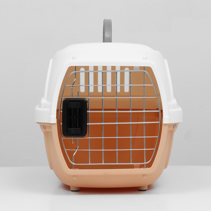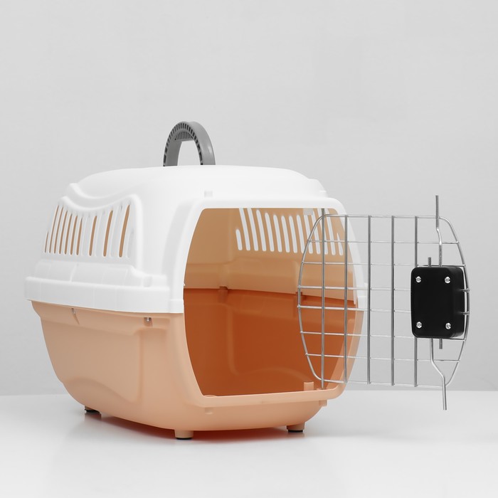 Переноска для животных, 47×32.5×30 см, вес до 9 кг, с металлической дверью, пластик, персиковая