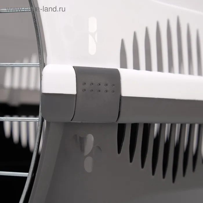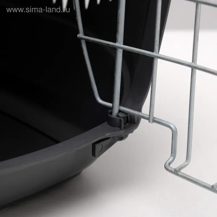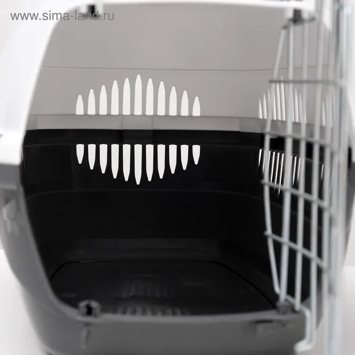 Переноска имеет приятный внешний вид, достаточно вместительна, есть вентиляционные отверстия в боковых частях, решетчатая металлическая дверца и удобная ручка.