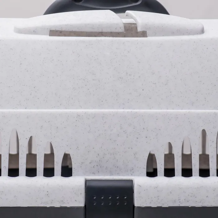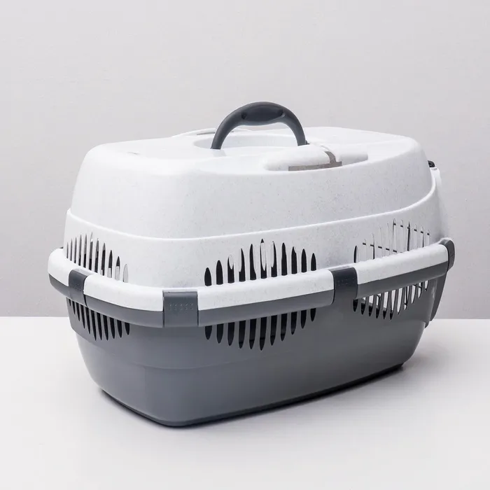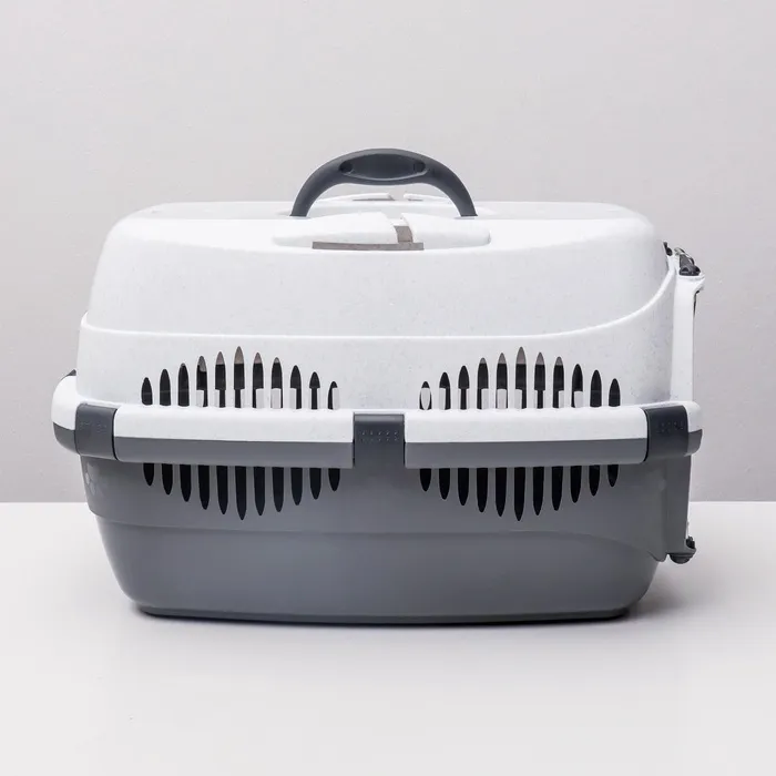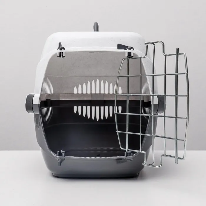 Переноска разработана специально для транспортировки кошек и собак средних пород. Оснащенная металлической дверцей, которая запирается сверху и снизу и имеет дополнительные поворотные фиксаторы, переноска обеспечивает безопасность питомцев во время путешествий.