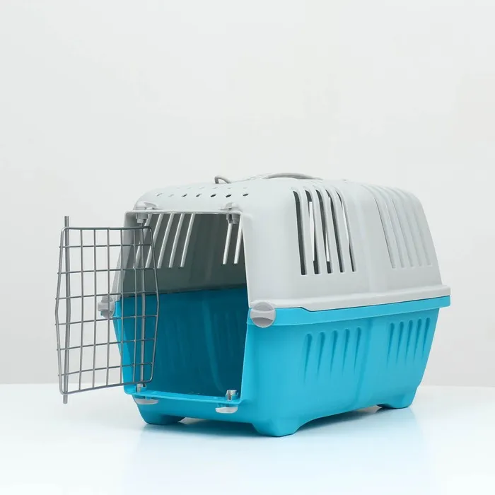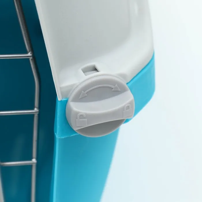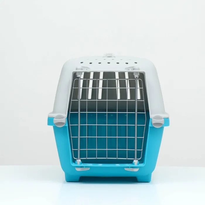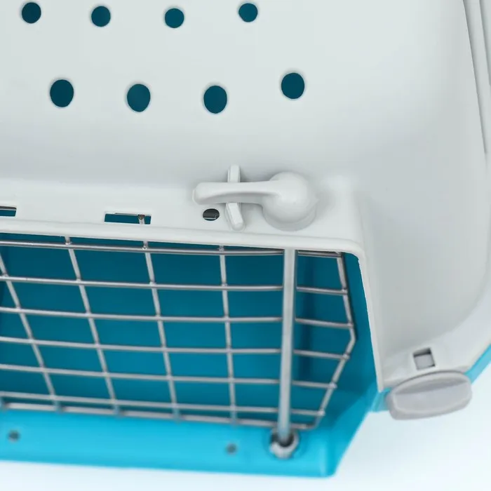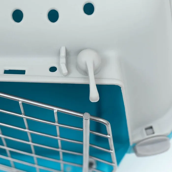Металлическая дверца имеет удобные замки, расположенные с двух сторон, что обеспечивает надежное закрепление и предотвращает возможные побеги животного во время перевозки.