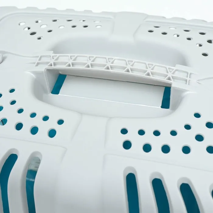 Переноска имеет удобную ручку для переноски и может быть легко разобрана для удобного хранения и очистки.