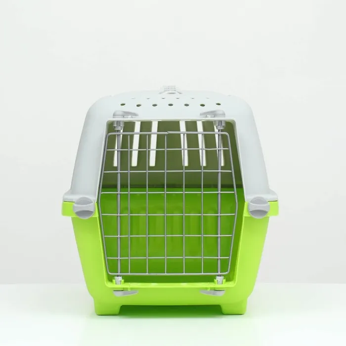 Металлическая дверца имеет удобные замки, расположенные с двух сторон, что обеспечивает надежное закрепление и предотвращает возможные побеги животного во время перевозки.