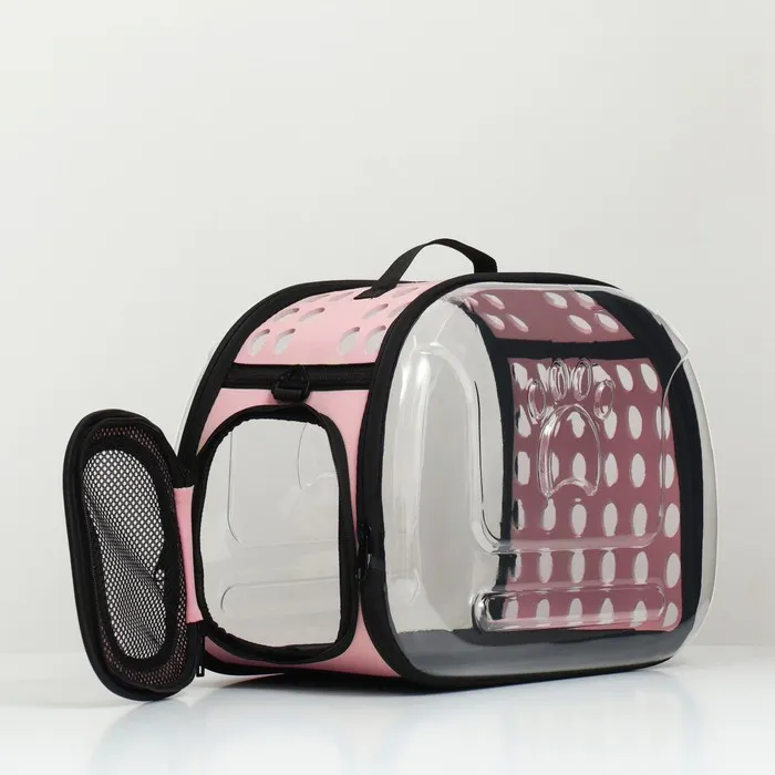 Переноска для животных подходит для -кошек, котов, мелких пород собак, щенков, грызунов, кроликов, крыс, морских свинок позволяет снизить уровень стресса у животных. Прозрачная сумка отлично подходит для транспортировки собак и кошек весом до 8 кг в транспорте -самолет, поезд, автобус, автомобиль . Преимущество данного зоотовара: модель-трансформер - удобно складывается, занимает минимум места при хранении. Наличие вентиляционных отверстий, легкость ухода, удобная ручка, жесткий каркас и дно. Переноска для собак мелких пород изготовлена из безопасных материалов и главное без запаха. Наша стильная и прочная переноска для животных сделает любую поездку, поход или путешествие комфортным. Данные товары для домашних животных можно использовать для походов к ветеринару, для собак в самолет, автоперевозки. Пластиковая переноска, рюкзак, сумка. На боковинах переноски есть защитная пленка, удалите ее!