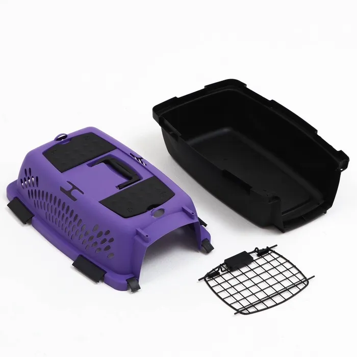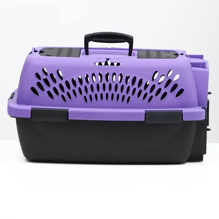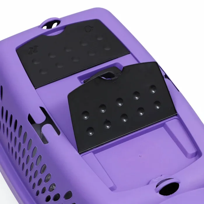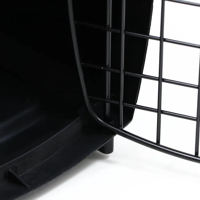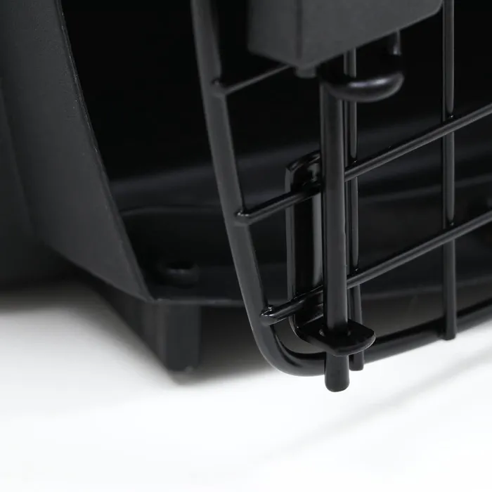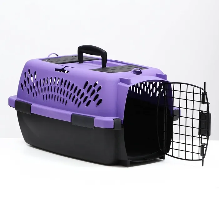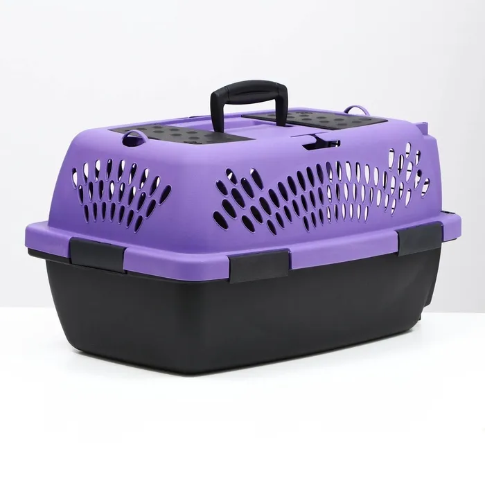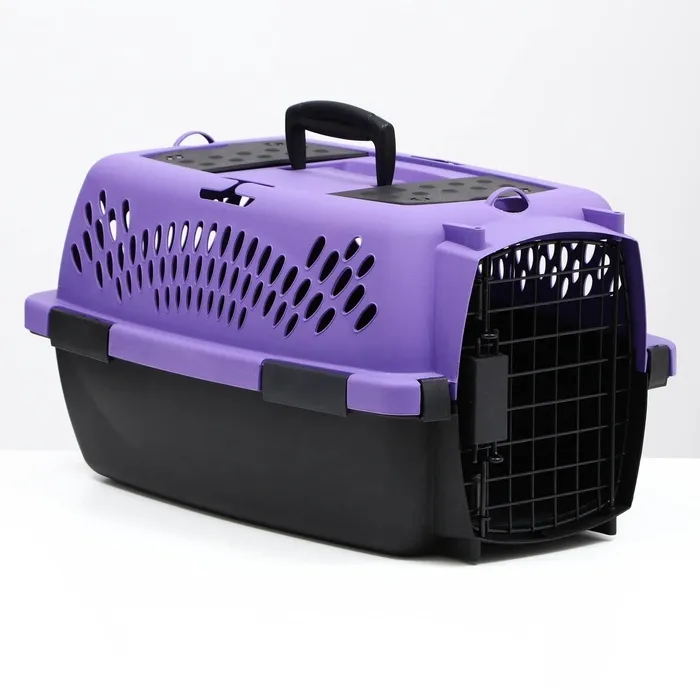 Переноска имеет приятный внешний вид, достаточно вместительна, есть вентиляционные отверстия в боковых частях, решетчатая пластиковая дверца и удобная ручка.