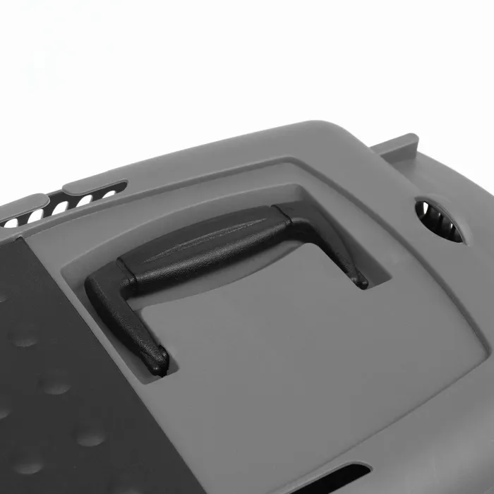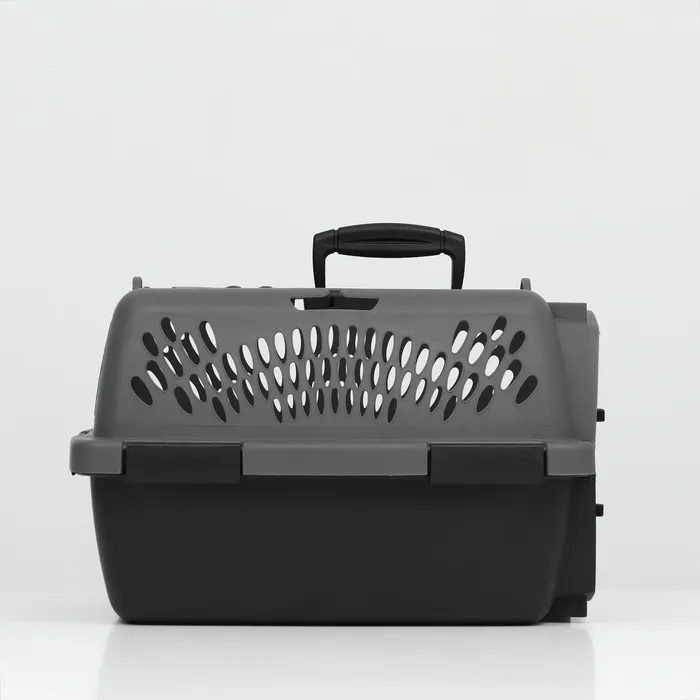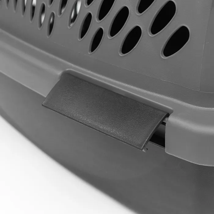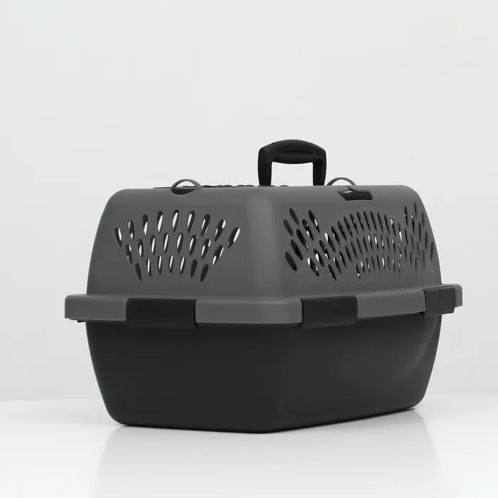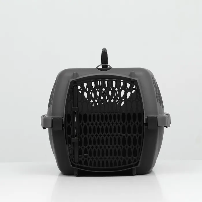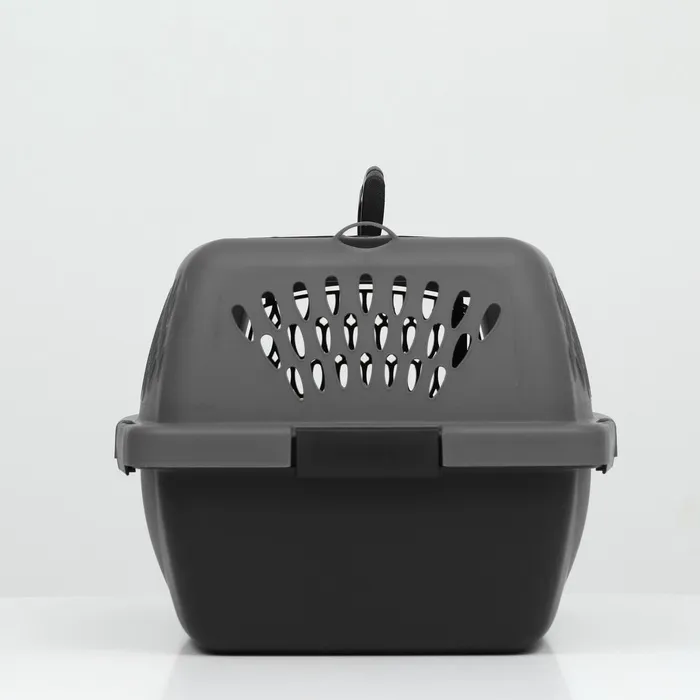 Переноска имеет приятный внешний вид, достаточно вместительна, есть вентиляционные отверстия в боковых частях, решетчатая пластиковая дверца и удобная ручка.