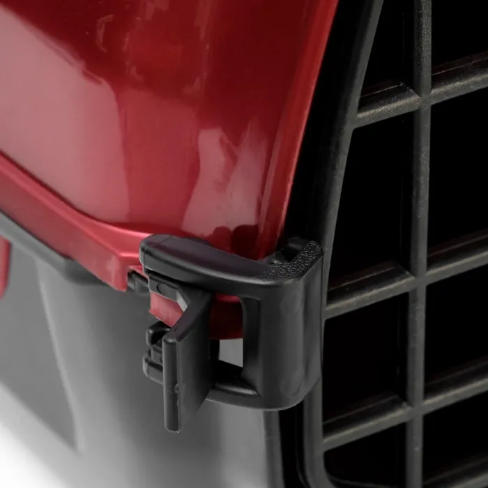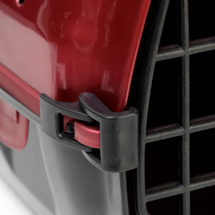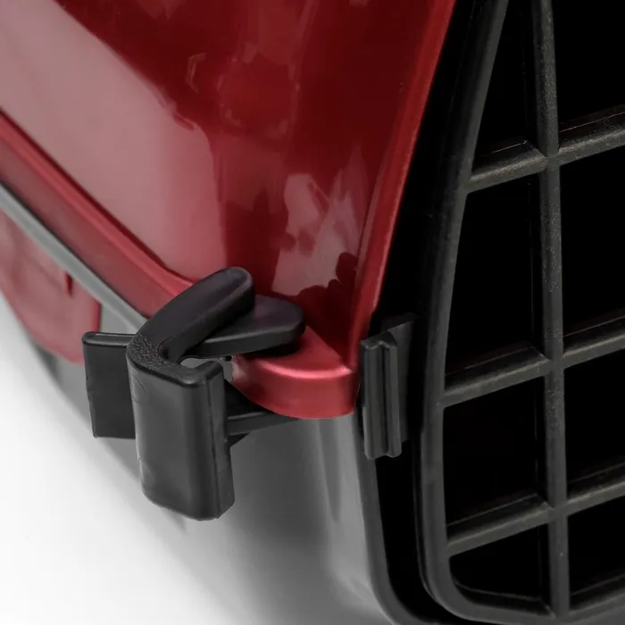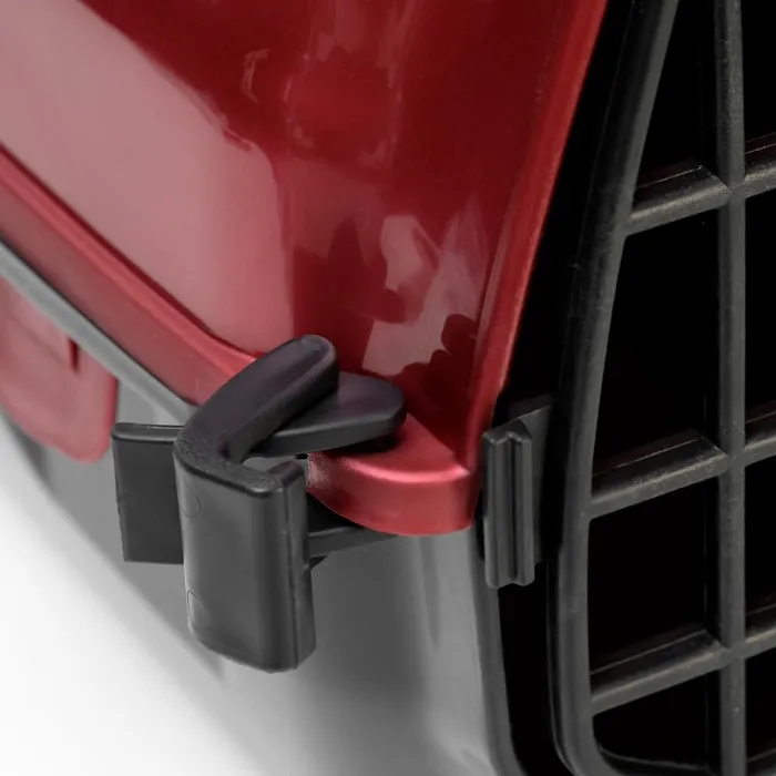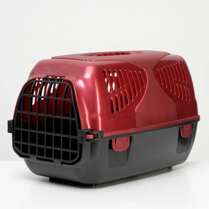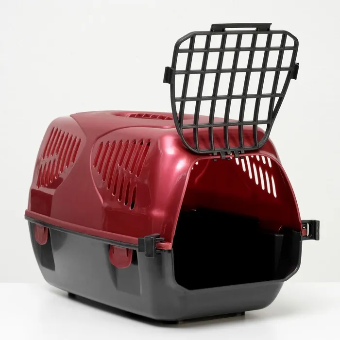 Переноска имеет приятный внешний вид, достаточно вместительна, есть вентиляционные отверстия в боковых частях, решетчатая металлическая дверца и удобная ручка.