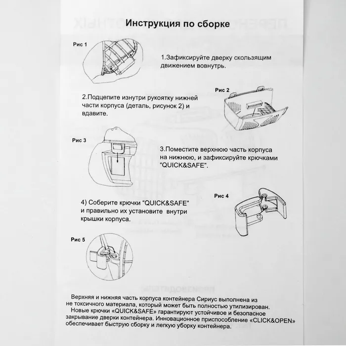 Материал: высококачественный прочный пластик, металл, не токсичный.