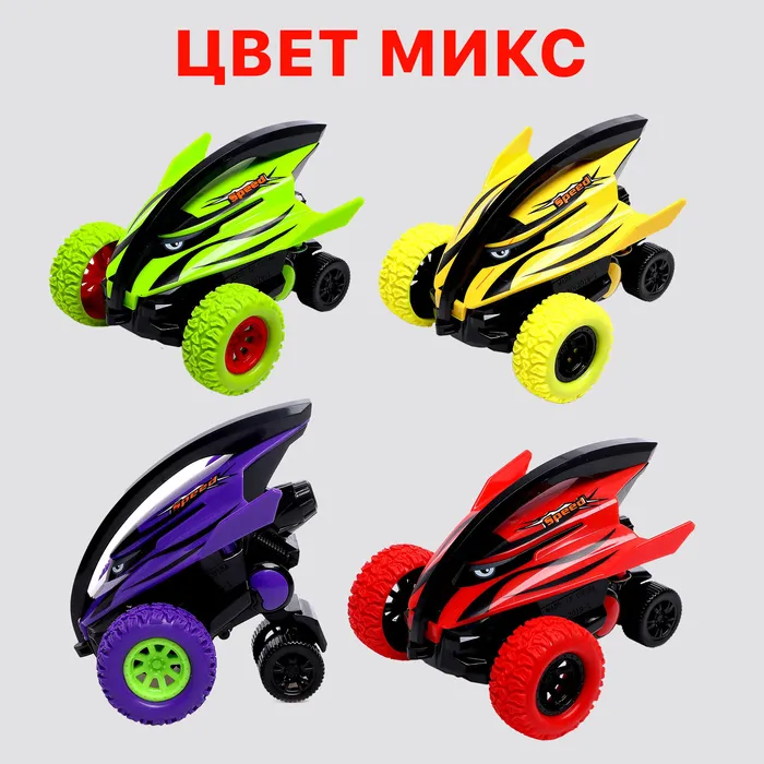 - Цвет МИКС – яркий сюрприз: цвет машинки определяется случайным образом: красный, фиолетовый, зелёный или жёлтый. Какой бы вариант ни достался, он точно станет любимцем вашей коллекции.
