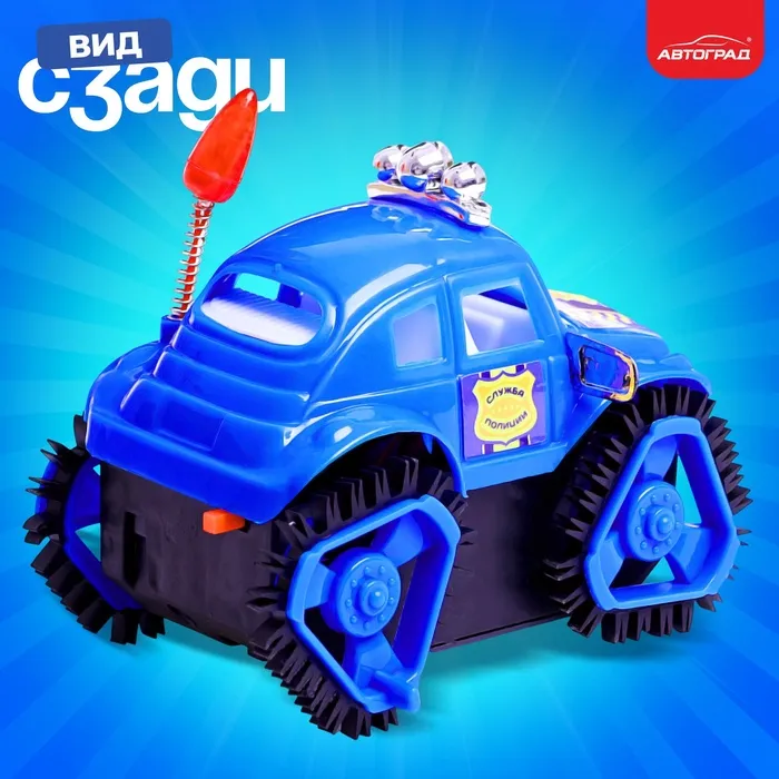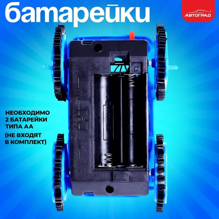 - Встроен самоходный механизм. После включения транспорт едет вперёд.