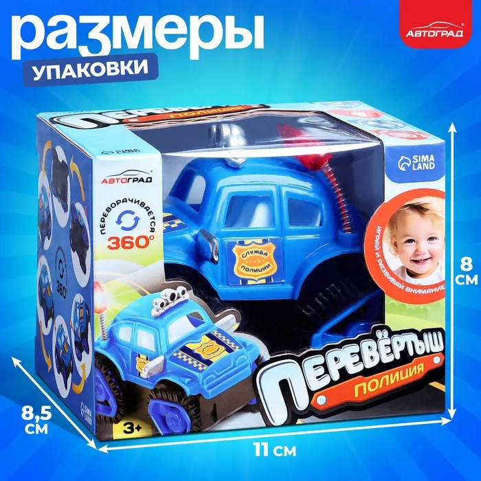 Перевёртыш «Полиция», на батарейках, цвет синий — Характеристики