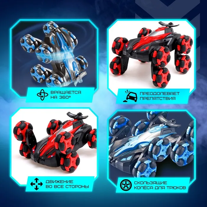 Машинка на радиоуправлении «Мега-перевёртыш» приятно удивит ребёнка и порадует его ярким и стильным дизайном. Игрушка может двигаться во все стороны, преодолевать любые препятствия и вращаться на 360°. 8 скользящих колёс позволяют делать головокружительные трюки, а звуковые и дымовые эффекты создадут атмосферу гоночных соревнований.