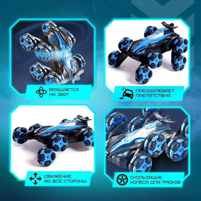 Перевёртыш радиоуправляемый, работает от аккумулятора, свет, звук, дым, 8 режимов работы, цвет синий — Характеристики