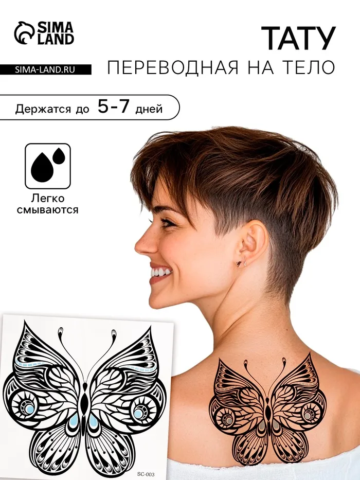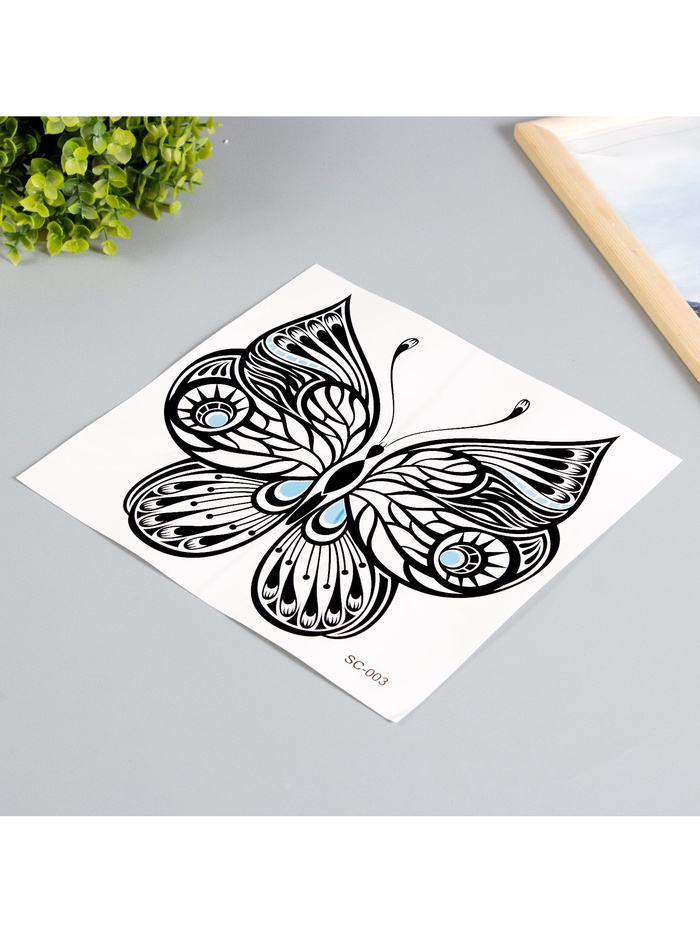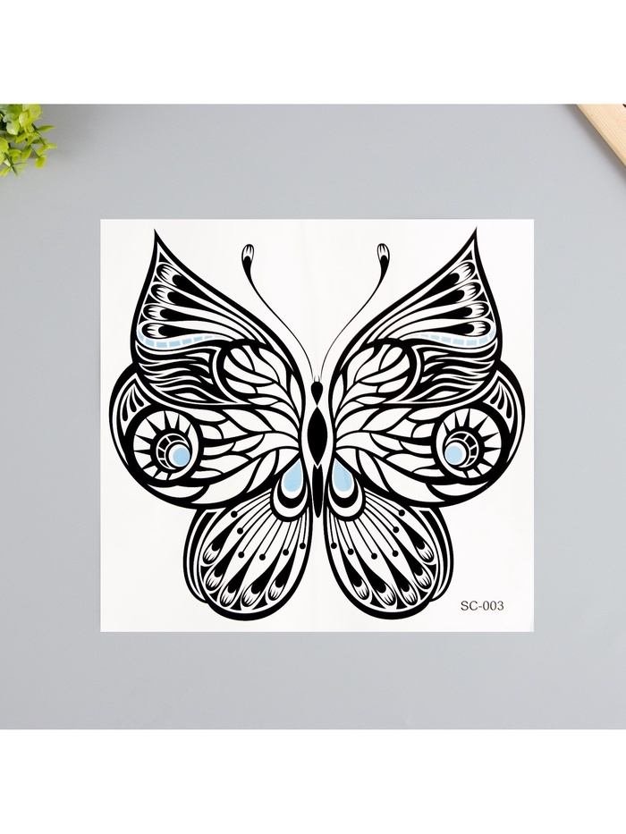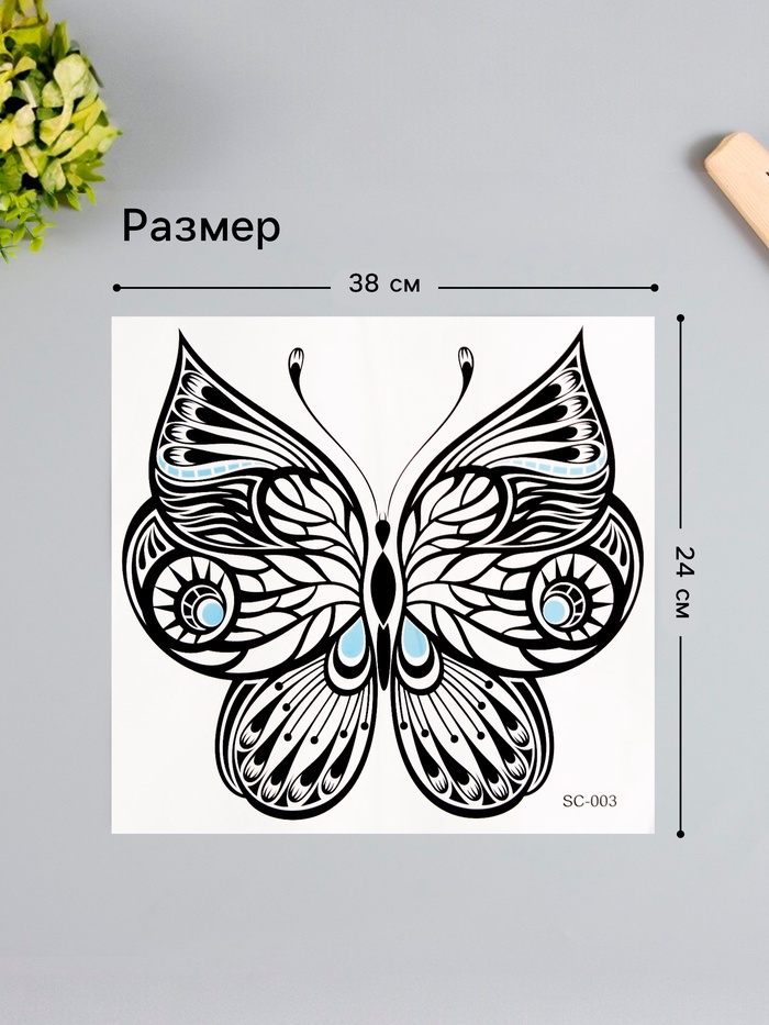 Переводная тату на тело чёрная «Бабочка», 38×24 см — Характеристики