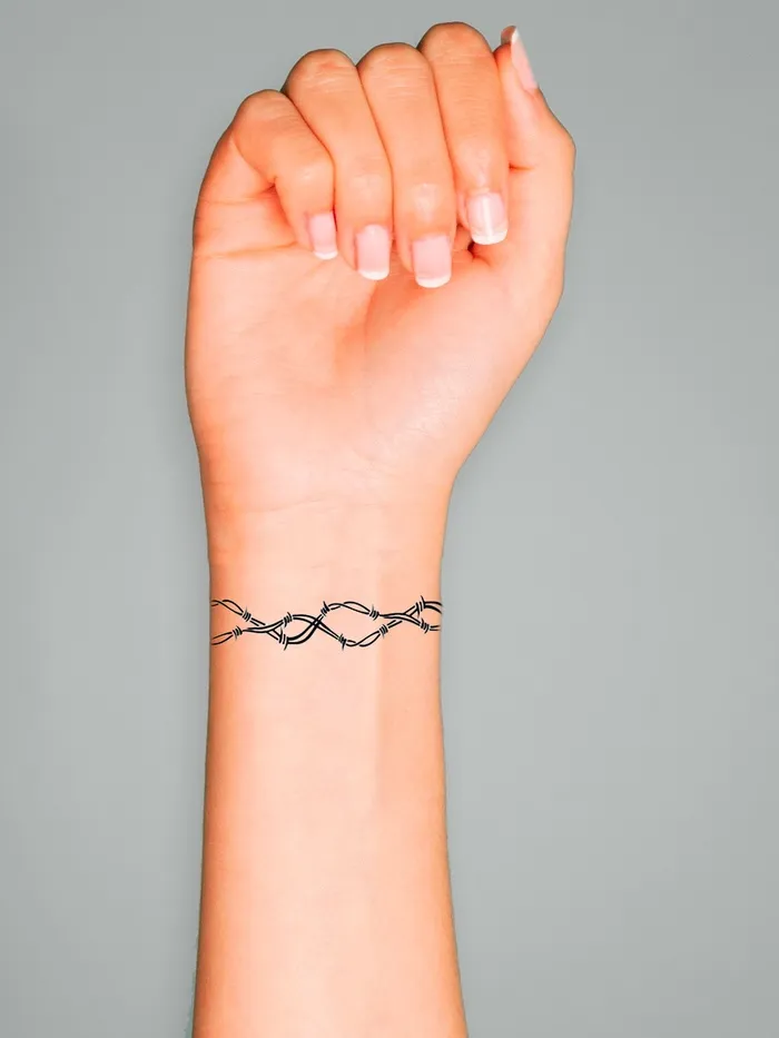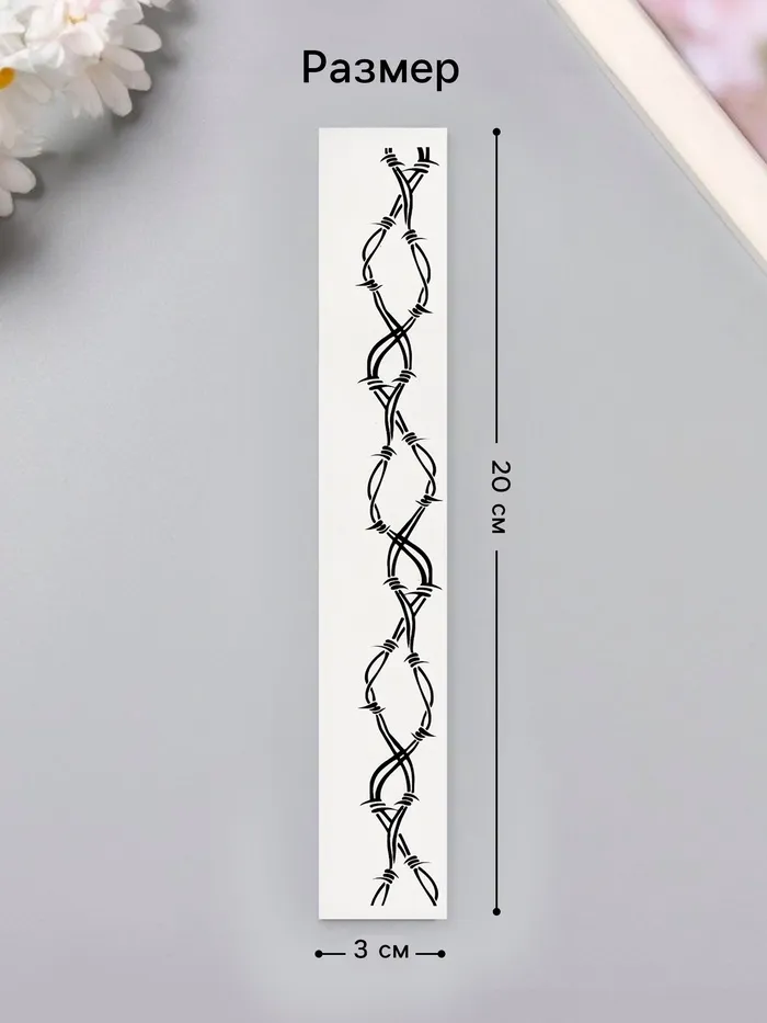 Переводная тату на тело чёрная «Браслет. Колючая проволока. Волны», 20×3 см — Характеристики