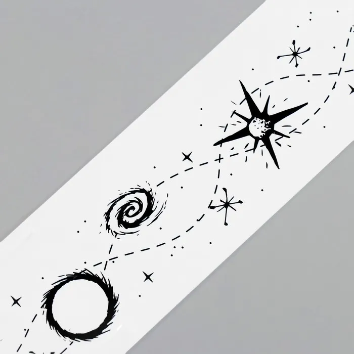 Откройте новые горизонты с уникальным украшением! Черная переводная татуировка «Браслет. Космос» для запястья подарит вам стиль, который нельзя игнорировать.