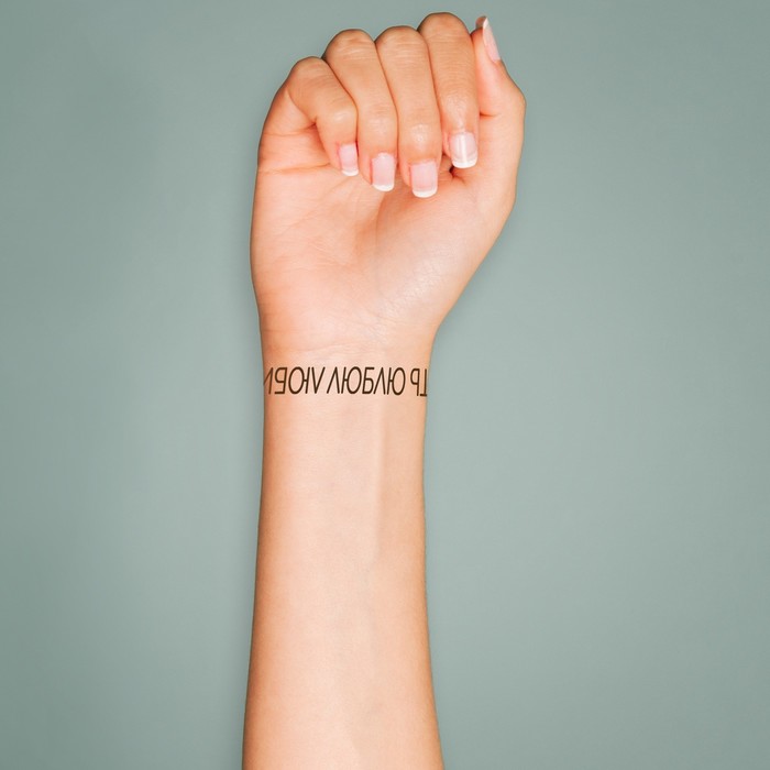 Вырази чувства стильно и изысканно! Переводное тату в виде браслета с надписью «Люблю» — это оригинальный способ подчеркнуть свою индивидуальность и выразить глубокие чувства. Идеальное украшение для запястья, которое говорит само за себя.