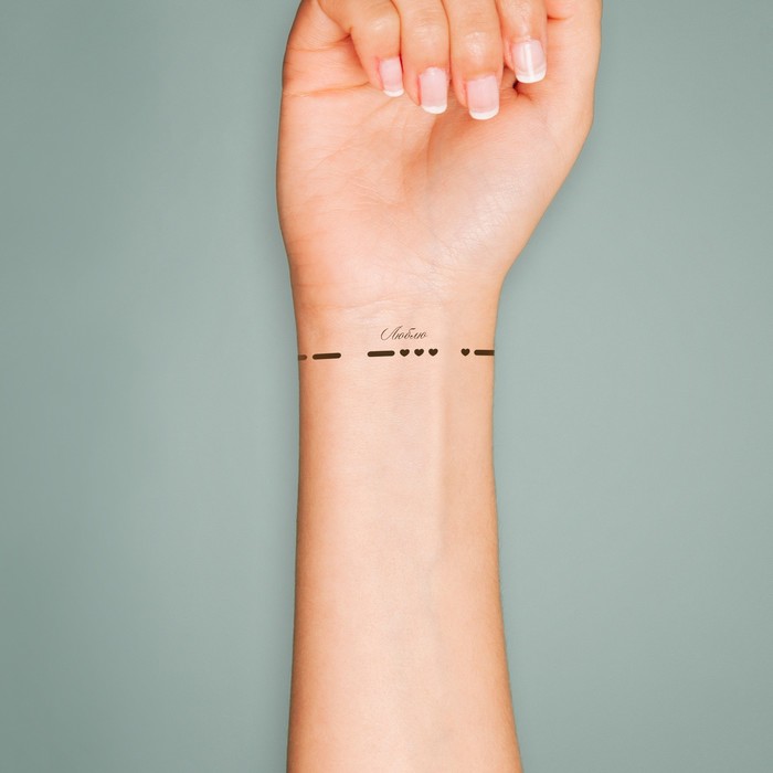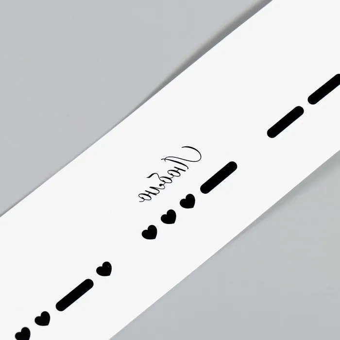 - Азбука Морзе: Послание «Люблю» зашифровано в виде пульсирующих точек и тире, делая татуировку не только визуально привлекательной, но и загадочной. Такой браслет расскажет о ваших чувствах тем, кто умеет «разгадывать» эту тайную письменность.