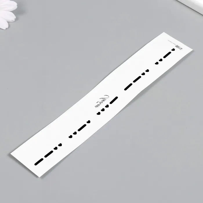 Украсьте свое тело уникальными символами! Временная татуировка «Браслет. Люблю» с азбукой Морзе — это оригинальный и стильный способ подчеркнуть ваши чувства и стиль, идеально подходящий как для личных событий, так и в качестве выразительного аксессуара на каждый день.