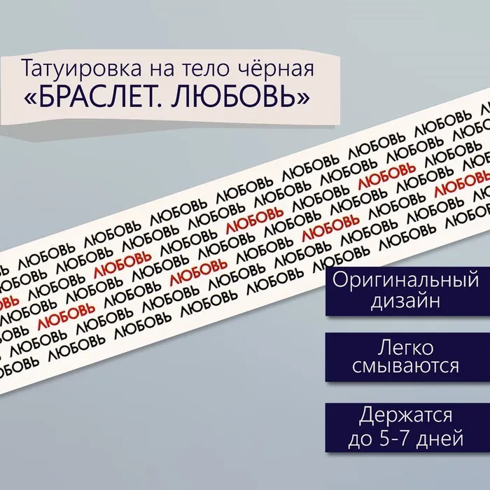 Долговечная красота: Временная татуировка «Браслет Любви» поможет вам выглядеть стильно и современно, подчеркивая индивидуальность и настроение. Незаменимый аксессуар для тех, кто любит самовыражение в разнообразных формах и стремится всегда быть в центре внимания!